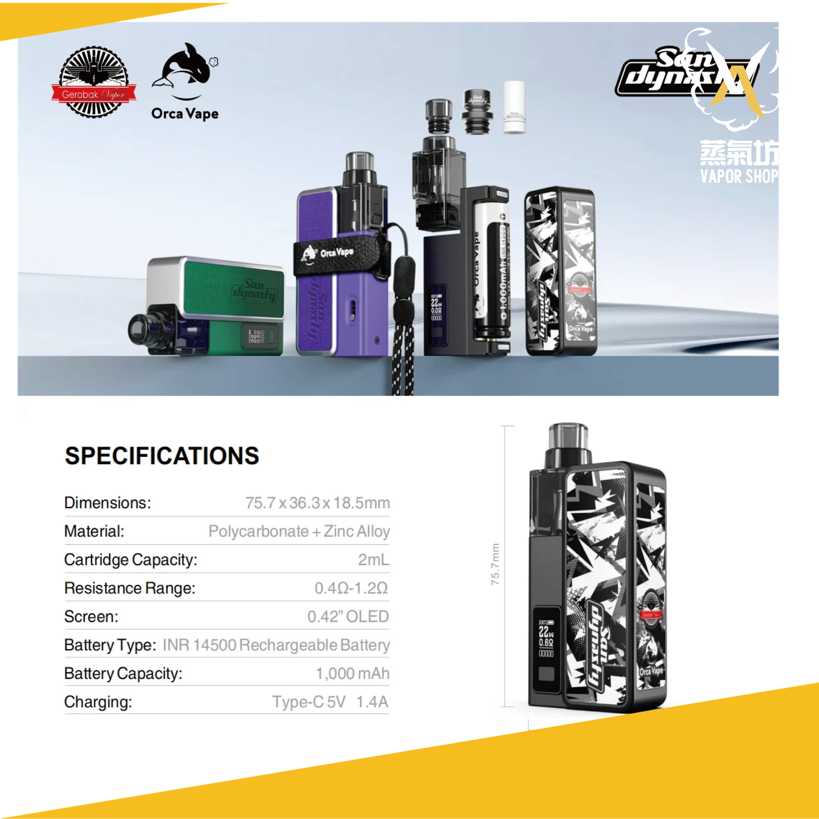 尺寸:75.7*36.3*18.5mm